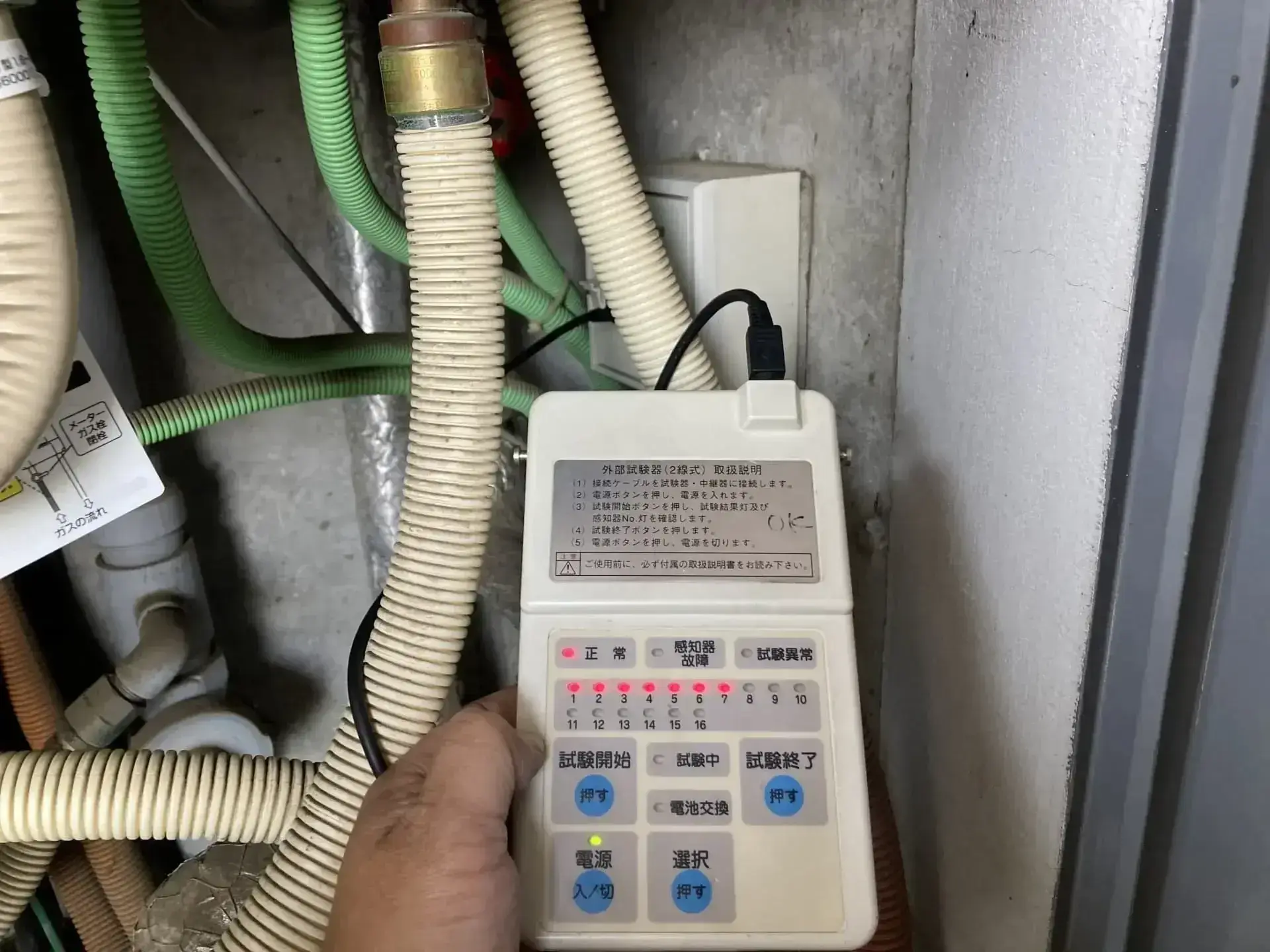 ガス漏れ火災警報設備の点検では、ガス漏れ検知器や警報システムの動作確認を行います。ガス検知センサーの感度調整、配線のチェック、予備電源の確認を実施し、緊急時に確実に作動することを確認します。